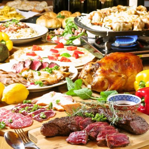 名物の肉料理が入ったお得なパーティーコースは2時間飲み放題付3850円(税込)~ご用意しております!名物の肉料理がよくばり盛りだくさんの内容となっております♪旬のお肉やこだわりの食材を是非ご堪能ください!飲み放題ももちろん充実のライアップ!!+500円で3時間飲み放題にプランアップ可能!是非ご利用ください!!